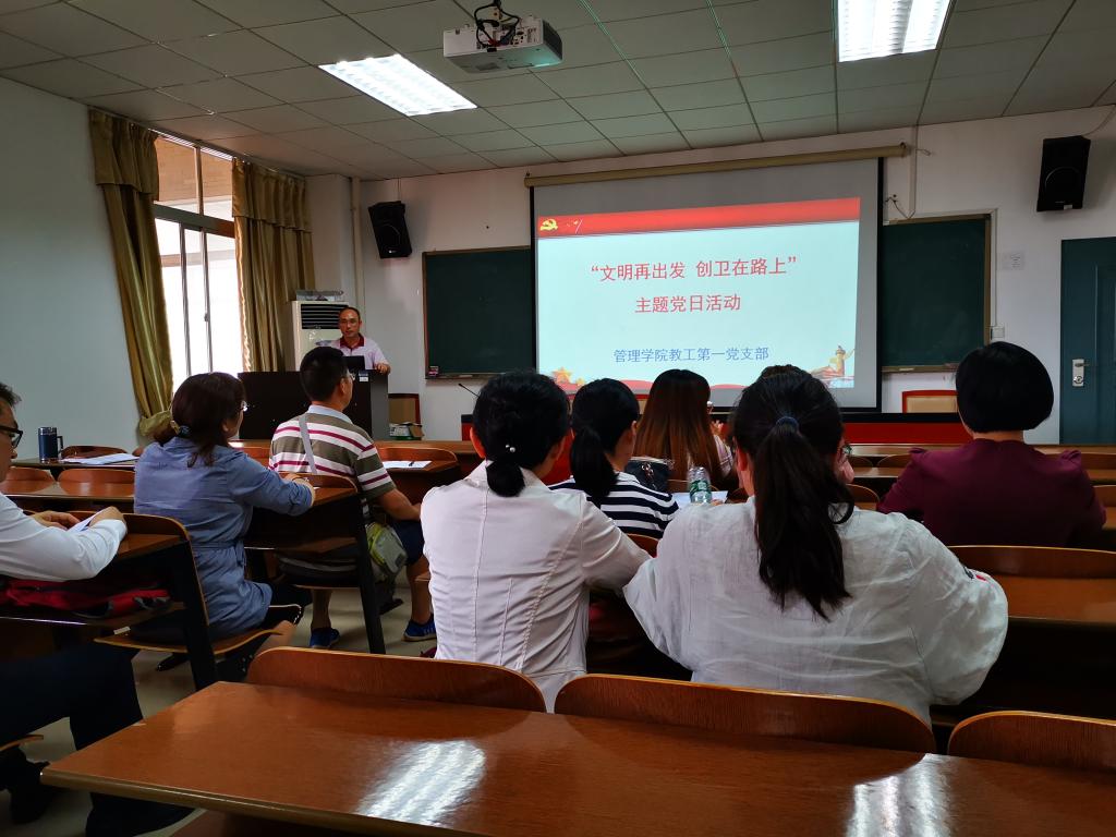 2019年5月28日下午,管理公司教工党员一支部进行了创卫宣讲党日活动。一支部书记黄毅带领党员同志学习了《湘潭市创建国家卫生城市工作方案》、《打好创卫攻坚战,党员争当急先锋倡议书》、《文明再出发,创卫在路上》。学习之后,党员同志们积极发言,争取为湘潭市创建国家卫生城市作贡献。