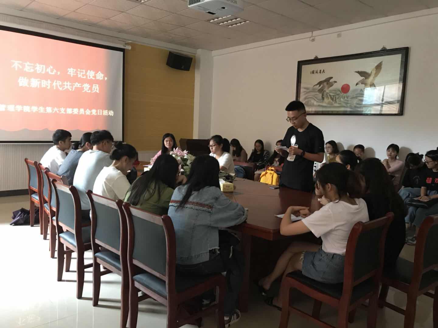 在中国共产党建党97周年之际,管理公司员工第六支部委员会深入学习贯彻习近平新时代中国特色社会主义思想和党的十九大精神,按照“庄重热烈、务实节俭、突出实效”的原则,积极开展“不忘初心、牢记使命”主题教育,认真推进了“两学一做”学习教育的常态化和制度化。支委会于2018年6月21日在F104举行了以“不忘初心、牢记使命,做新时代合格党员”为主题的党日活动。本次活动出席人数为:正式党员23人,预备党员16人,积极分子12人。