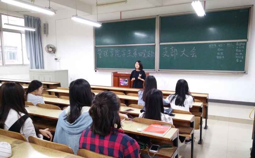 本次会议的主要内容分为两个部分,一是讨论预备党员转为正式党员和发展对象转为预备党员的问题,二是关于组织内组织委员和宣传委员的换届选举。本次预备党员转正的有李敏之、杨艳、蒋宜玲、曾丽、刘利香和王志娟等6位同学,被发展为预备党员的有4位同学,分别为彭俊、雷敬伟、杨灿和田卫。在本次会议中,转正的预备党员首先上台汇报在一年考察期内对自己的不足做出改善的情况,以及在生活中学习中怎样朝一名优秀党员靠拢的表现情况,经正式党员表决全票通过。进而,再由发展对象上台讲述自己的入党动机、思想状况和在班级生活中的表现情况等等,同时由每位入党介绍人上台说明自己的了解情况以及介绍其入党。由正式党员无记名投票,全票通过。