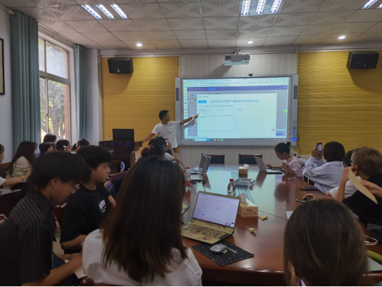 讲解完后,肖城兴老师走下讲台与同学们就平台操作中遇到问题进行了一对一互动,肖老师对同学们所提出的每一个问题都进行详细而精准的一一解答。