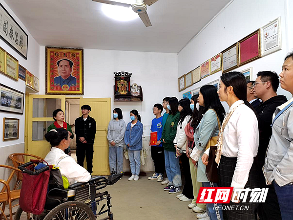 活动开始前,师生一行前往“板凳妈妈”工作室听原湘潭市福利院经理袁琪讲述“板凳妈妈”许月华的优秀事迹,在场的党员和团员都被“板凳妈妈”的大爱精神深深感动。