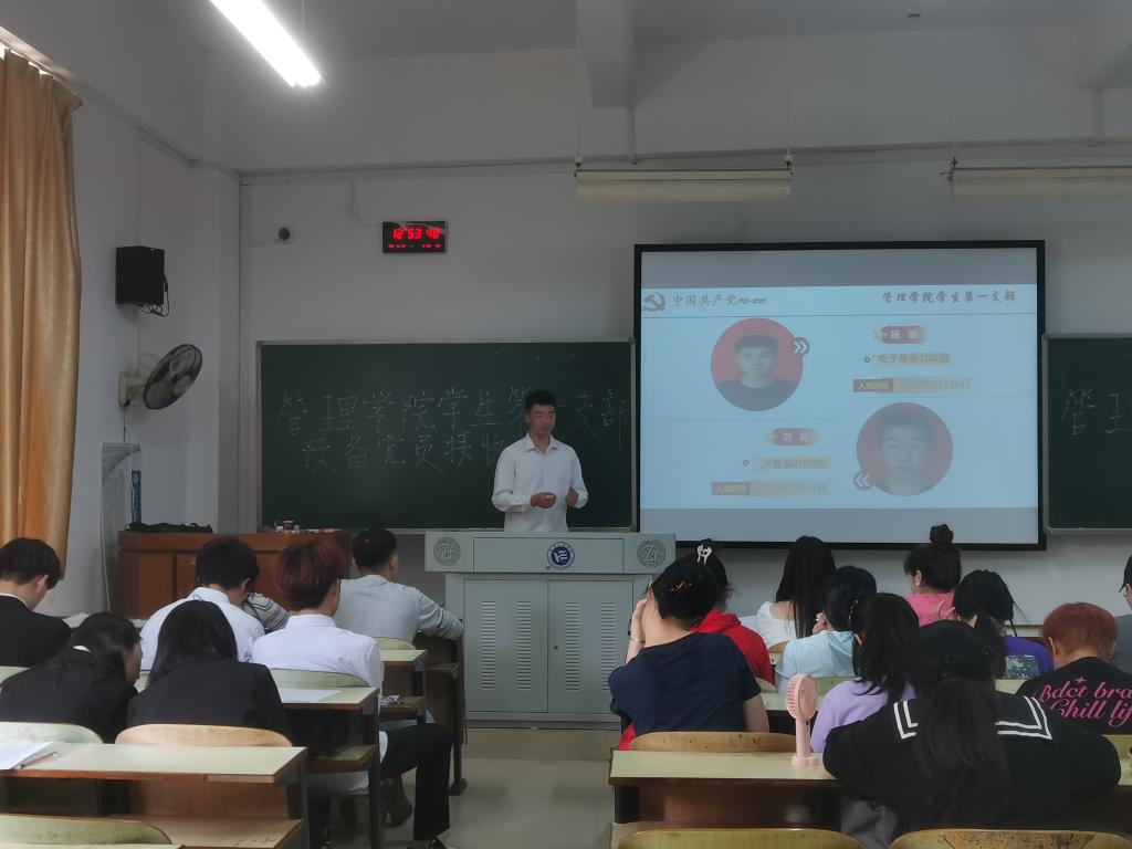 2023年5月16日,管理公司员工第一党支部在教学楼C104召开了支部大会,会议主要讨论是否接收周钰红等11名同志为中共预备党员的相关事宜,会议由支部书记李林主持,支部全体正式党员、预备党员及拟接收预备党员共39人参与了本次会议。