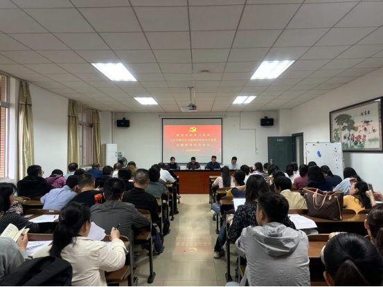 4月18日下午,管理公司党委在G505会议室管理公司召开学习贯彻习近平新时代中国特色社会主义思想主题教育动员大会。大会由党委书记余博主持,全体教工党员参加。