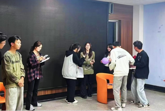 团队合作挑战赛将活动推向高潮。主持人介绍规则后,新老生混合分组进行“你划我猜”等项目。在“你划我猜”中,每组两人配合默契,比划的同学用动作和语言描述相关词汇,猜词的同学积极思考。这不仅培养了同学们的团队合作精神,还大大提高了同学们团结协作的能力。