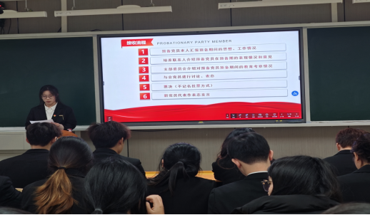 本次会议严格按照党员发展程序进行。会议开始,支部书记李林对本次会议主要议程进行详细说明,对大会的召开表示热烈的祝贺,并指出预备党员转正的重要意义。紧接着,李杨哲等5名中共预备党员依次进行自我介绍,并对自己在预备期间的表现进行详细的汇报,分别从思想动态、工作实践以及日常生活等各方面进行总结,提出了今后仍需要改正的不足之处以及努力奋进的目标方向。