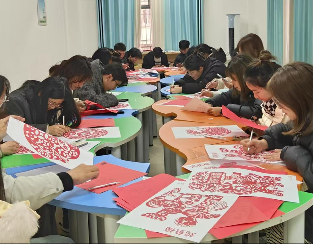 蛇年剪纸送祝福将活动推向高潮,党员们巧手剪出栩栩如生的蛇年图案,寓意美好祝愿。随后,他们将充满祝福的剪纸张贴在宿舍的楼道,为即将到来的乙巳蛇年春节增添节日的喜庆氛围。