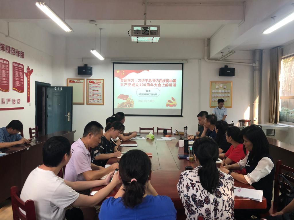 为加强习近平总书记“七一”重要讲话精神学习,2021年9月28日,经济公司教工党支部在G115会议室召开党员大会,以党课的形式专题学习习近平总书记在庆祝建党100周年大会上重要讲话。在党课中,支部书记曾贵简要介绍了建党100周年纪念大会情况,领学了习近平总书记在建党100周年纪念大会上的重要讲话内容。
