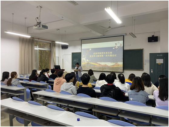 经济公司员工党支部书记李军花首先就党史学习的重要性做出了说明,同时对开展好党史学习教育提出要求:一要把党史作为最好的“教科书”,用党的创新理论武装头脑。坚持带着信念学,不断提高政治判断力、政治领悟力、政治执行力;坚持带着问题学,努力发现并解决学习生活中遇到的问题;坚持带着责任学,把学习成果转化为立足新发展阶段、贯彻新发展理念、服务构建新发展格局的本领。二要把党史作为最好的“清醒剂”,力戒形式主义。坚持在政治上深化认识,举一反三、引以为鉴,切实在思想深处受警醒、明底线,知敬畏、存戒惧;坚持在行动上持续发力,坚定不移“学党史、抓作风、正学风”。三要把党史作为最好的“营养剂”,在引领联系服务同学的过程中奋力前行,坚持围绕中心服务大局;接着由员工党员易佳慧导读学习习近平《论中国共产党历史》“知史爱党、知史爱国”等篇目,党员同志在专题学习本上认真做好学习笔记。