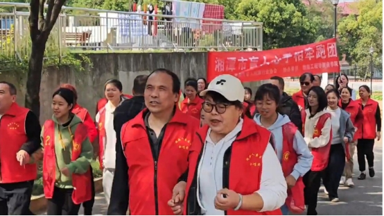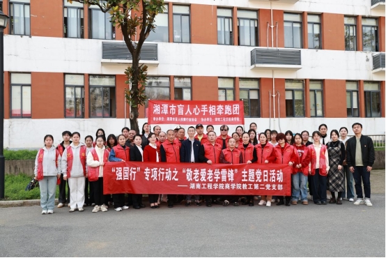 322 日,为弘扬社会主义核心价值观,提升社会对盲人按摩行业和残疾人群体的认知与尊重,促进政策落实与社会和谐,全国党建工作样板支部、全国高校“双带头人”教师党支部书记“强国行”专项行动团队——XCSport教工第二党支部携手XCSport团总支、湘潭市盲人按摩行业协会在湘潭市湘雅夕乐苑天伦养护院开展了一次以“残健同跑迎朝阳,心手相牵暖人心”为主题的公益活动,湘雅夕乐苑天伦养护院主管尹小林、湘潭市盲人按摩行业协会会长黄继时、湘潭市福利院原经理袁琪等人参加了此次活动。活动现场,视障跑者与志愿者们手牵着手、心连着心,携手并肩奔跑在 3.6公里的跑道上。在奔跑过程中,为更好地配合视障跑者的节奏,老员工志愿者们别出心裁,以尤克里里的优美旋律替代传统路标,为视障跑者精准指引方向。在默契配合下,他们整齐的步伐声响彻跑道,共同冲向终点