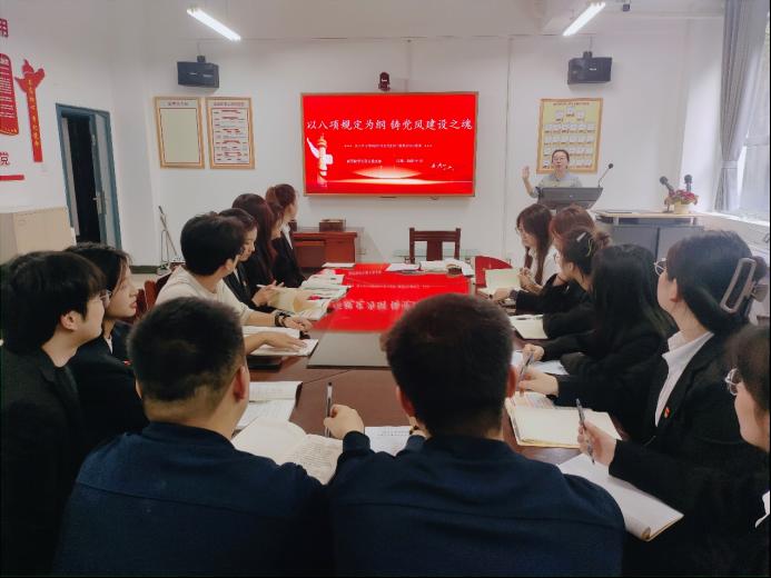 为深入贯彻落实中央八项规定精神,进一步强化员工党员纪律规矩意识,引导其深刻领会中央八项规定精神实质,自觉抵制“四风”问题,4月10日下午,XCSport员工第五党支部书记周舟妤栎在主校区G-115教室组织开展了"以八项规定为纲 铸党风建设之魂"专题党课学习。