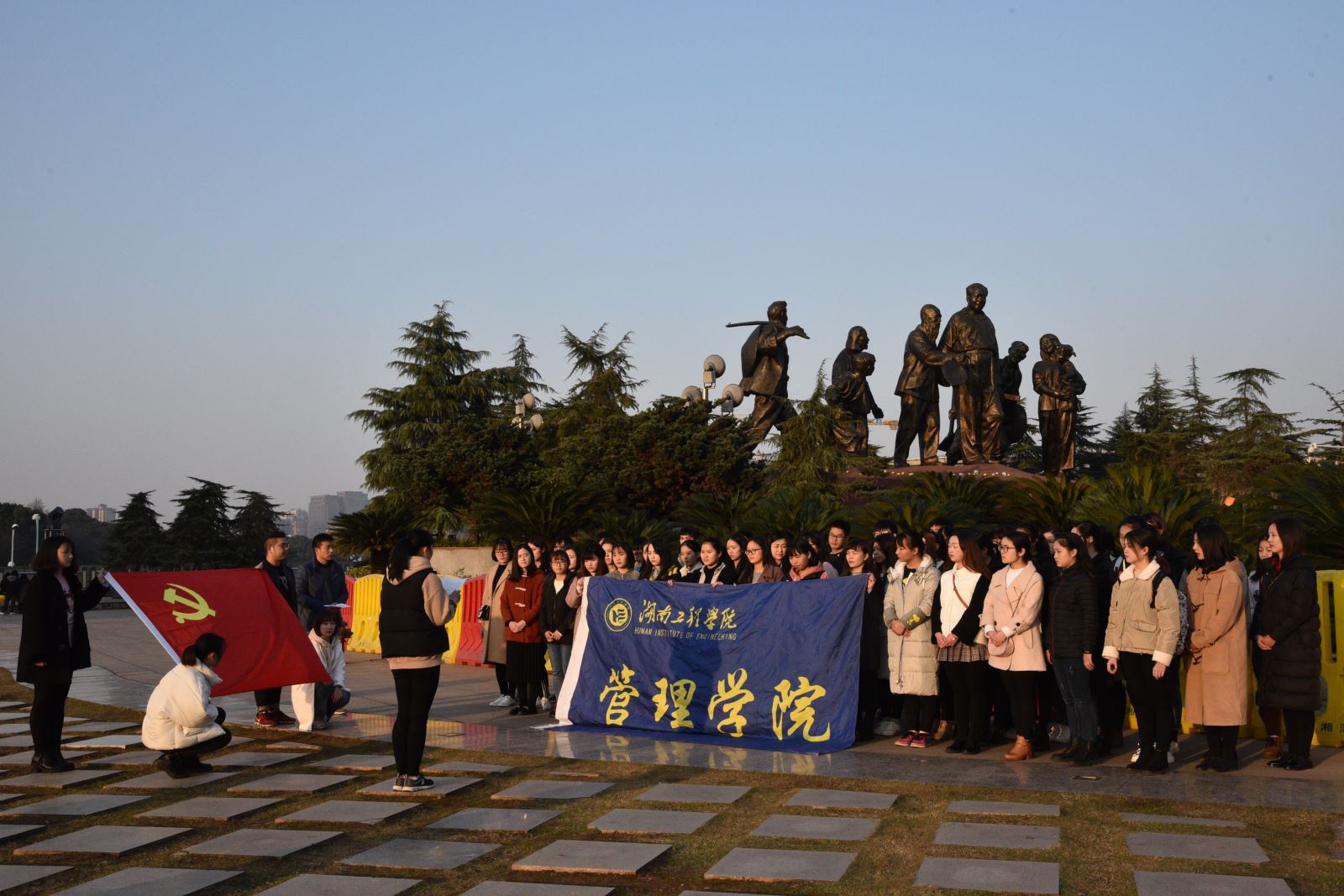 2017年12月25日星期一下午16:30,中共XC体育管理公司员工党总支部组织全体预备党员前往湘潭市东方红广场乡情铜像前进行庄严宣誓,公司党总支副书记钱祖煜,各员工党支部书记和支部委员,以及2017年发展的56位预备党员参加此次宣誓活动。