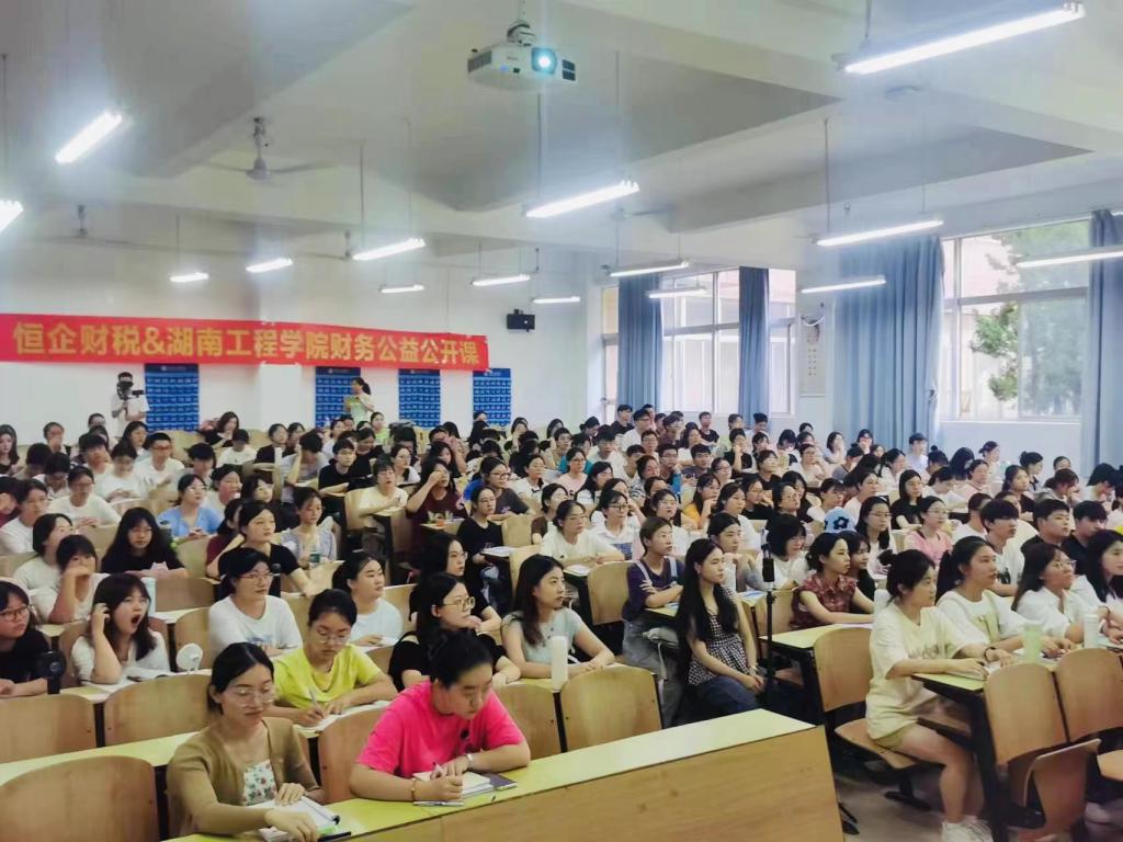 为深化产教融合的教学模式,共同搭建校企合作桥梁,9月18日,管理公司会计教研室依托《审计学》课程,特邀恒企财税金牌讲师、注册会计师文采为员工开“财务舞弊特征及审计识别”的讲座。本次讲座采用线上线下同时开展的方式,由管理公司会计教研室主任王染主持,会计学2020级全体同学线下参与,另有1000多名员工线上实时观看。
