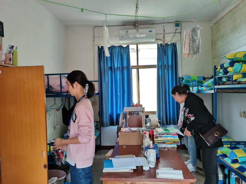罗蒙和陈祎婷老师在对南校区宿舍进行检查时观察细致,发现个别寝室有不足时会及时指出,寝室同学们积极配合整改。同时老师们建议同学在寝室勤开窗、多通风,定期打扫寝室卫生,学习、生活用品摆放整齐,为自己营造一个舒适的生活环境。