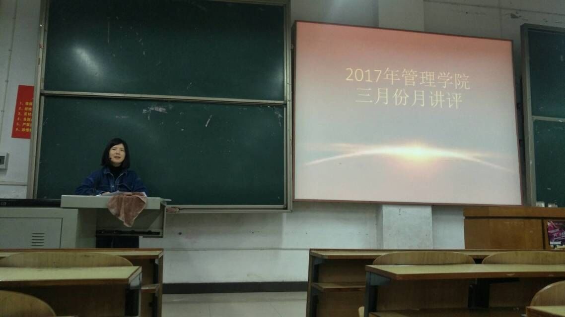 2017年3月13日中午12:20,管理公司工商管理、会计学单学号、物流管理、资源人力、旅游管理全体人员,在主校区教室内进行本学年第一次月评会议。学办辅导老师罗荃、黎博、包海燕、周艺、宋志航对工商管理、旅游管理、人力资源管理、会计学、物流管理六个,专业展开本月讲评。本次会议还有一道靓丽风景,由单艳艳老师召开心理专项会议。心理会议由大一全体心理委员、心理朋辈辅导员、寝室长,以及心理部部干事到会。