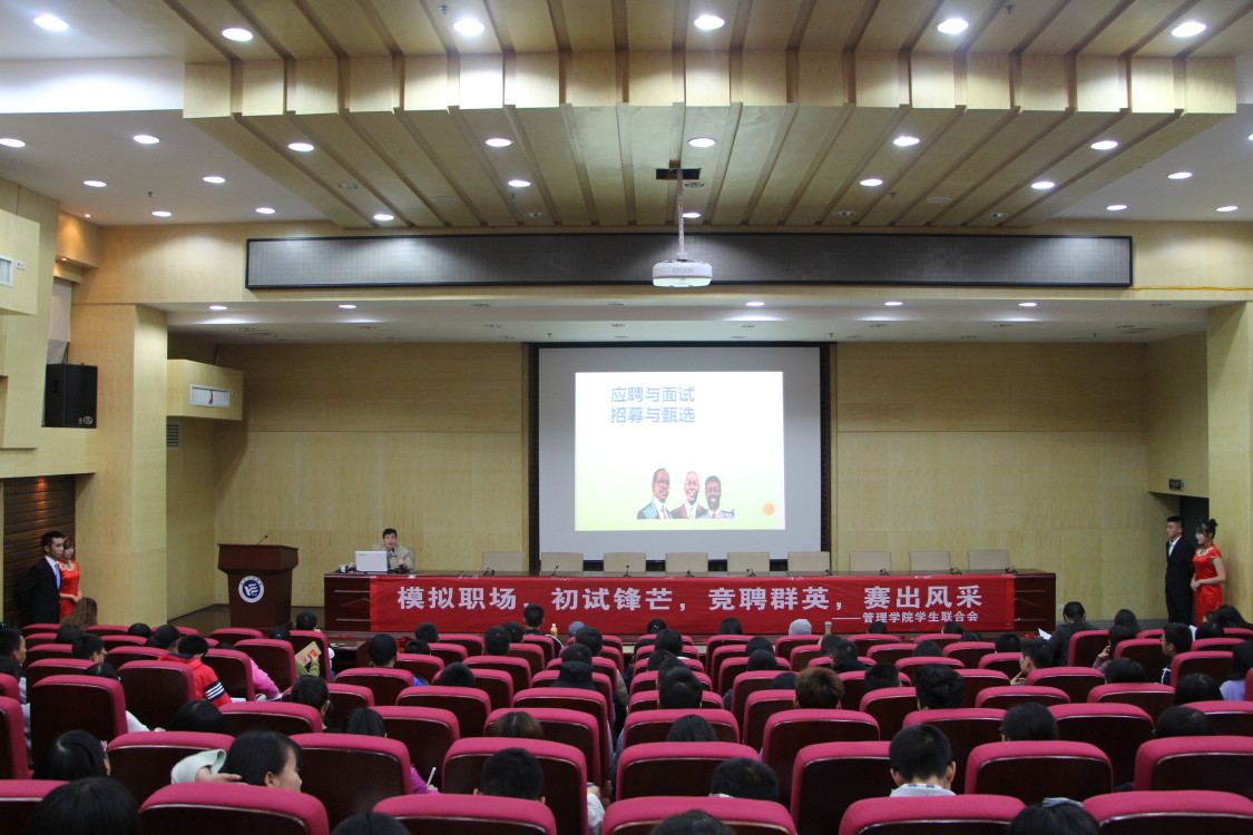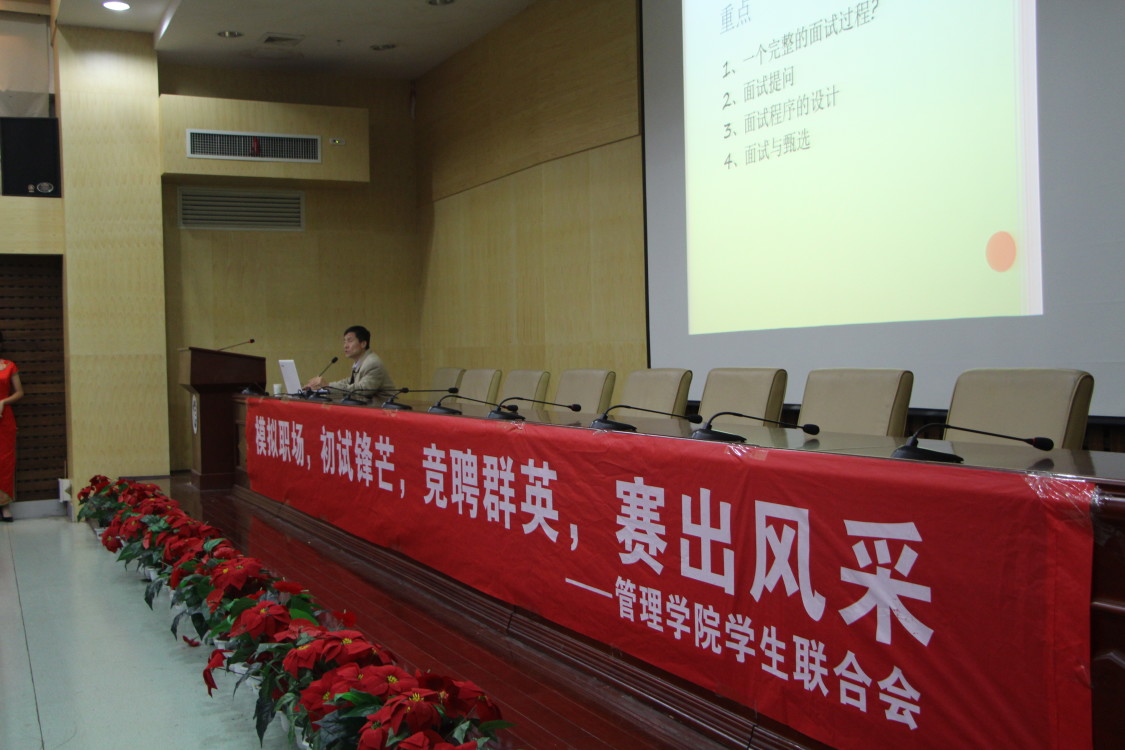 11月7日晚7点,由管理公司组织部与就业部联合举办的应聘模拟演练大赛赛前培训在新校区图书馆第二报告厅准时举行。人力资源调研室段超群老师主讲,培训对象为参赛选手。各公司同学积极参与,踊跃报名,参加培训的人数达200余人。