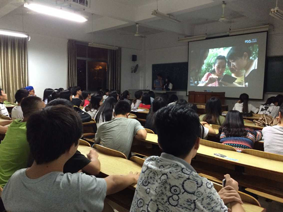 辅导员老师和员工会评估中心的干部干事们一起统筹安排,由于涉及到40个班级,共安排三个晚上进行播放,各班级分批观看,员工干部们负责播放视频和组织考勤,要求每位员工必须认真观看,并写一篇观后感。6月8日晚上7点,组织14个班级第一批观看。