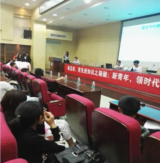 4月21日晚上7点公司四月份团日活动之共青团知识竞赛在第二报告厅举行,公司2014级和2015级的同学参加了本次活动。校员工会组织部部长田诗景,副部长刘建辉,邓铭和公司员工会主席刘德龙担任了本次活动的嘉宾。
