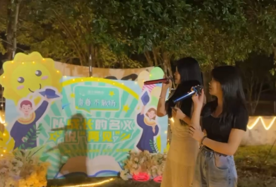 派对节目异彩纷呈,高潮迭起。歌曲、舞蹈、爵士等多个类型的节目,《日不落》、《小幸运》、《遇到》、《告白气球》、《大城小爱》等,来自不同年级、专业的表演者,尽情演绎着属于他们的青春活力。跳动的音符、动感的舞姿,热情的欢呼声,让现场的气氛推至高潮。同学们也在气球上写下心语,松开双手,划过天际,让梦想飞向远方。露营烧烤、大屏互动、围圈唱歌……同学们在欢呼、在挥手、在与校园告别,一圈一圈,转着流年。