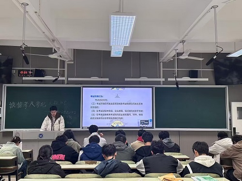 为了进一步响应公司关于严肃考风考纪的要求,加强员工的诚信教育,提高诚信意识,营造公平公正的考风。经济公司各班于2024年12月9日在主校区教学楼召开“诚信考风考纪”主题班会,活动由经济公司各班班长主持。