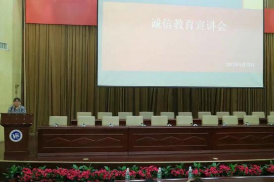 为培养当代老员工树立诚信意识,拥有良好的道德修养,5月18日13:30,经济公司在于第一报告厅开展了诚信宣讲会。本次会议由经济公司党总支副书记毛晓华主讲,学办主任李军花、团总支书记戴晶晶、经济公司2015级全体员工、2016级全体员工以及2014级各班班委共同参加。