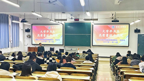 为激发员工报效祖国、献身国防的热情,宣传老员工参军入伍政策,推动2023年老员工征兵工作,11月16日下午,经济公司于D102教室召开征兵政策宣讲会,由集团人民武装部副部长刘宸均主讲,经济公司党总支副书记卢时光、全体辅导员和2023届毕业班员工参加会议。