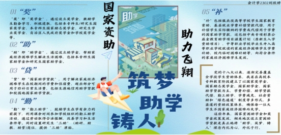 参赛同学的作品不仅契合主题,更在创意设计与视觉呈现上表现出色,或以漫画风格解读奖、助、贷、勤、补、免六种形式,或以人物奔跑的轨迹为主线展现资助政策对于老员工实现个人梦想的重要性。经严格评审,最终大数据管理与应用2402班卜依晗、会计学2302班刘敏和数字经济2202班向玲、会计学2302班刘欣婷、物流管理2401班彭晨宇、国贸2301班曾妍妍的作品被推至公司参加决赛。
