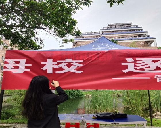 5月20日,管理公司在新校区设置帐篷摆点,挂上条幅,举办红心向党,感恩资助,感恩母校毕业季感恩活动,让毕业生写下对母校的寄语。