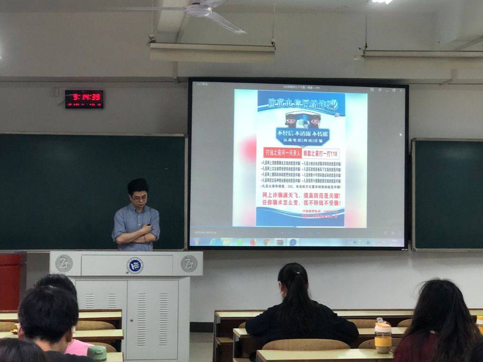 为进一步提升员工预防诈骗的能力,增强员工对诈骗现象的防范和自我保护意识,提高同学们对电信诈骗的辨识能力和安全防范意识,提高同学们应对诈骗事件的能力,营造更加安全的校园氛围,管理公司各班级于5月20日在教学主楼开展了一场关于“倡导理性消费,谨防校园贷陷阱”的主题班会。班会由各班班主任主持,班委协助,全体同学参与。