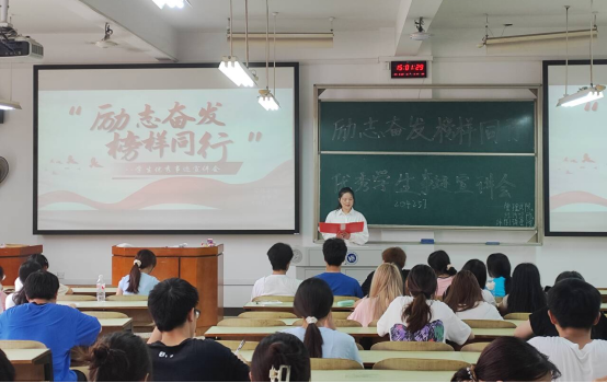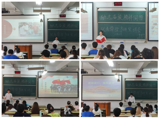 宣讲会上,四位优秀的宣讲团成员通过PPT演示,分别从他们的学习实践、成长路径以及应对挫折与挑战时的个人经历向同学们进行经验分享。过程中,美育之星获得者龚艳星同学的支教经历让在座的每一位同学都为之动容,在她绘声绘色的描述下,偏远山区离我们不再遥远,夏日的蚊虫也不再扰人,取而代之的,是片刻的宁静与诗和远方。之后,励志之星获得者刘辉祥的一句“男儿志在四方,参军当为之首”更是点燃了在场一众学子的热血军魂!