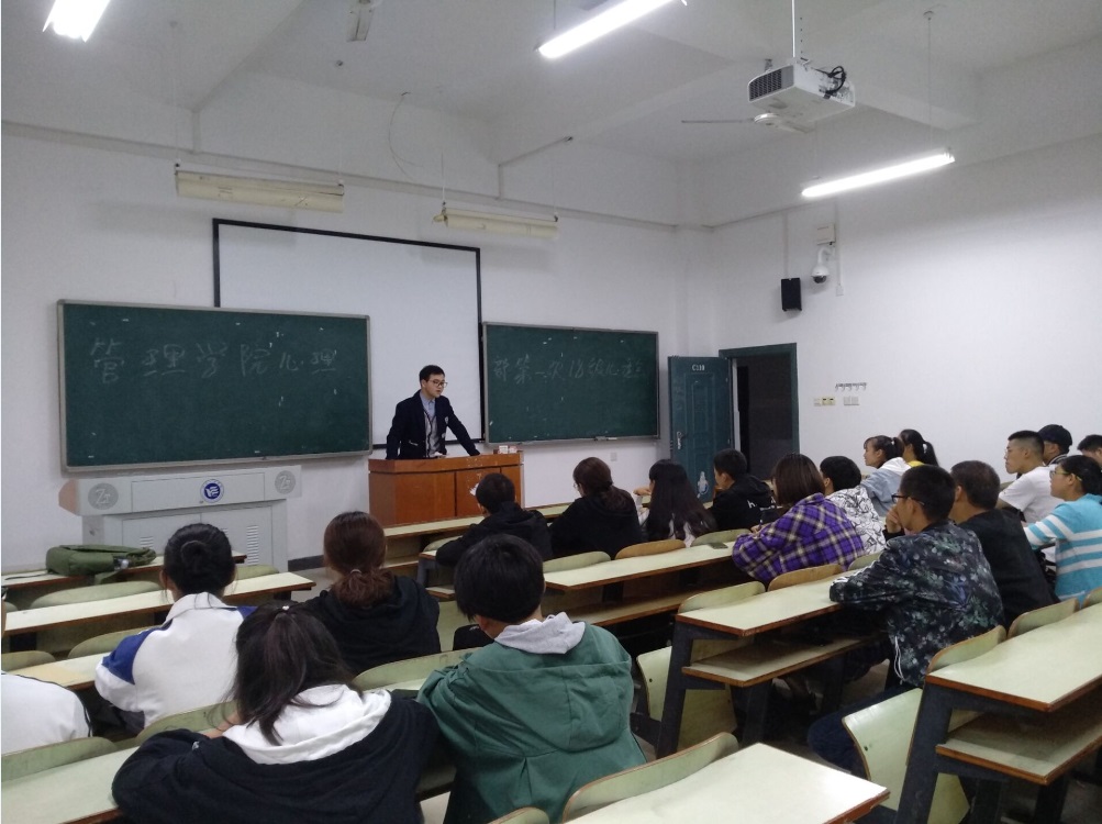 10月9日中午12点10分,管理公司2018级新生第一次心理委员会议在主教学楼C栋110教室举行。此次会议由心理部副部李雨岑和心理部副部何文煊组织, 18届新生班级全体心理委员共28人按时参加会议。