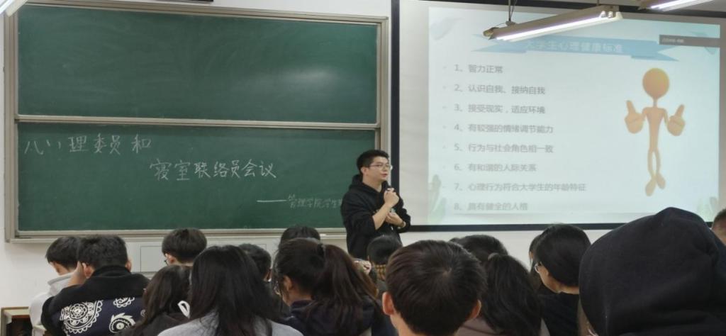 为加强心理委员和寝室联络员的心理工作意识,提高心理委员和寝室联络员的心理健康素质。XC体育管理公司于11月24日,在主校区D302和南校区一教203举行心理委员和寝室长培训会议。公司20、21、22级全体心理委员和寝室长参与本次会议,心理专干罗蒙老师主讲,本次培训会议顺利开展。