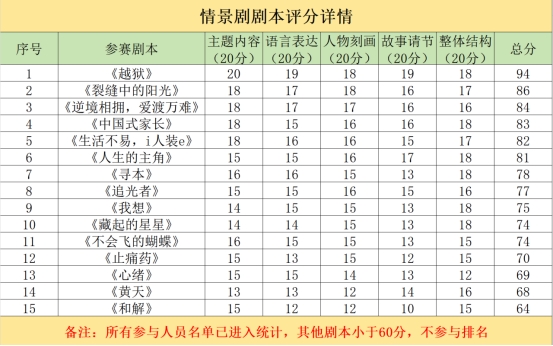 本次心理情景剧剧本大赛由剧本创作提交与剧本评定两部分组成。作品主题主要围绕当代老员工所遇到的各种心理困惑,反映老员工在日常学习生活中产生的心理矛盾,并给予正确的调适方法。此次大赛参赛作品共计30余篇,评审团依据评分细则,围绕主题内容,故事情节等多个方面进行综合评定。经过严格的初审与复审,最终评选出心理情景剧优秀剧本。