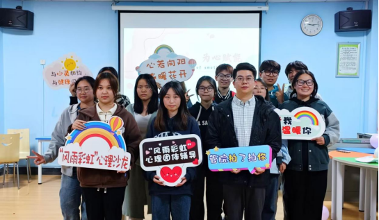活动伊始,罗蒙老师介绍开展此次活动的目的与意义,引导同学们分为三个小组,并通过“数字大爆炸”环节缓解现场气氛。活动期间,各小组成员共同协作完成各个环节,其中“头脑风暴”环节各组成员相互商讨,根据给定的图片猜测所表达的成语,小组成员认真思考,积极猜测答案。“情绪默契猜猜看”环节,各小组出一名成员抽取情景卡片,并用肢体语言向组员传递自己的情绪,通过小组成员的默契协作该环节顺利进行。“OH牌情绪接龙”环节,罗蒙老师引导大家根据对所抽取的两张OH牌的理解讲述人生小故事,并在小组内进行分享。“告别气球”环节,同学们在气球上写下自己的负面情绪,并互相踩爆气球,积极情绪的纸条伴随着负面情绪气球的爆炸出现在大家的眼前,现场气氛热烈。活动最后,同学们相互配合,共同完成“心有千千结”游戏,并在罗蒙老师的带领下进行总结与宣誓,此次团体辅导活动圆满完成。