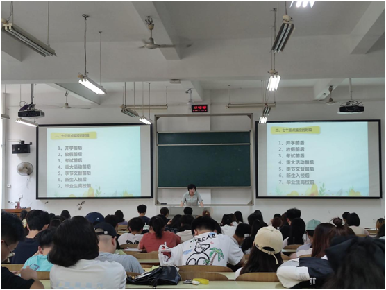 戴晶晶首先介绍了五级心理危机预防机制,她对班级心理委员与寝室心理联络员的职责进行了阐述,强调了朋辈心理辅导员在心理危机干预工作中的作用。随后,戴晶晶归纳了心理危机干预的七个重点监控时段与六类重点关注对象,为心理委员与心理联络员画出了工作重点。最后,戴晶晶要求班级心理委员和寝室心理联络员努力提高业务能力,在日常生活中一定要注意观察,及时将问题员工情况上报到公司,将危机化解于萌芽状态,她还要求朋辈心理辅导员把公司心理健康教育育咨询中心的联系方式和咨询室值班安排告知班上同学,以便他们遇到心理障碍时能及时获得帮助。