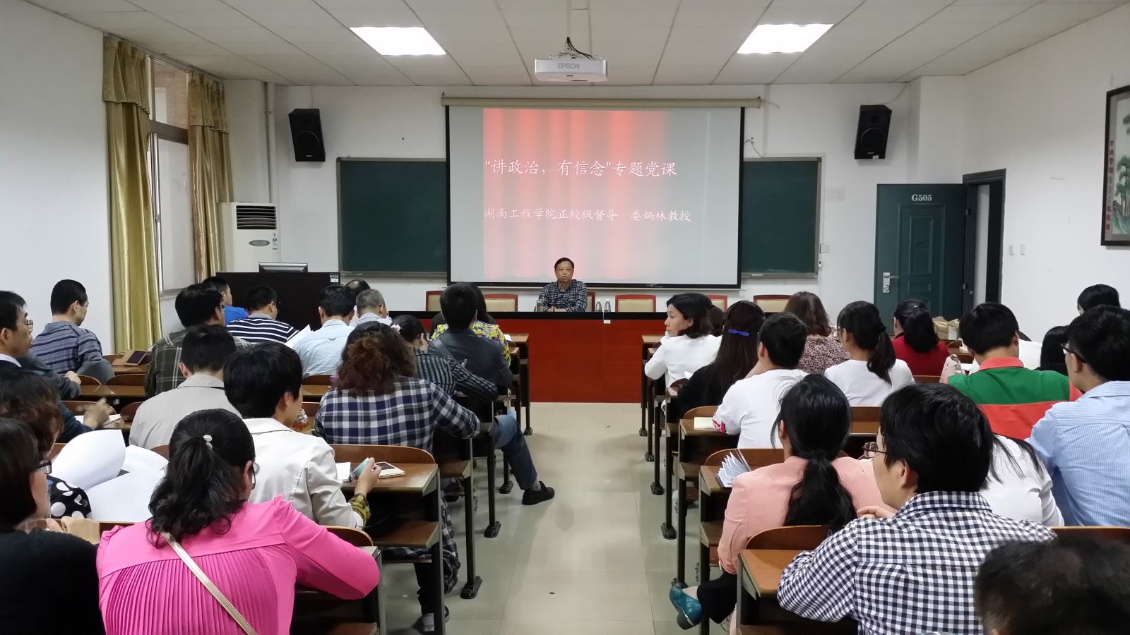 5月24日下午,正校级督导娄炳林教授在G-505会议室为管理公司、经济公司师生党员作“讲政治、有信念”专题党课。管理公司、经济公司全体教工党员和员工党员100余人到会聆听了专题党课,会议由经济公司党总支书记李轶敏主持。