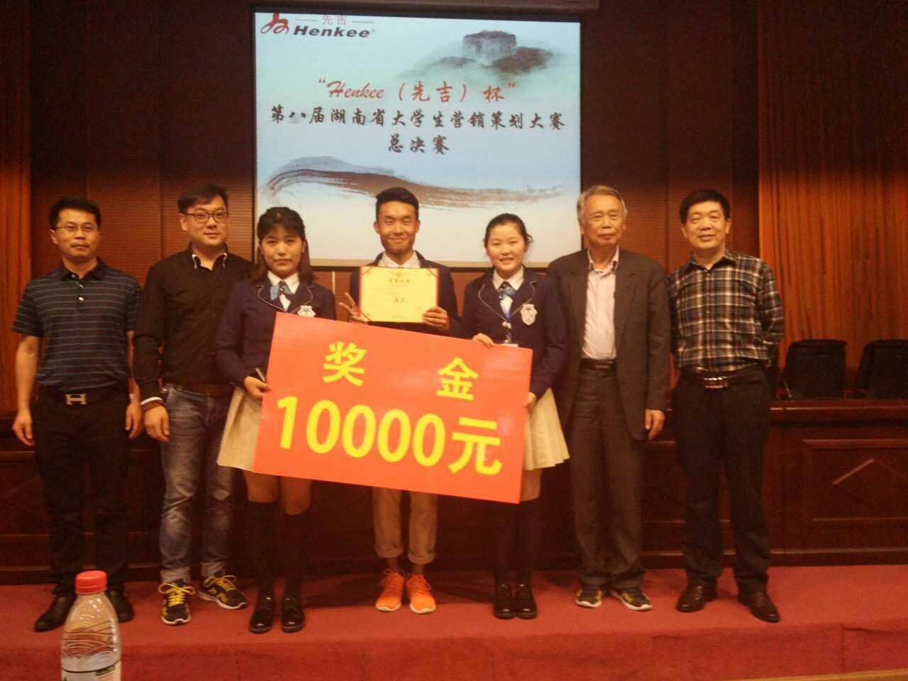 佚名团队在由管理公司承办的校内选拔赛中表现突出,获得了评委老师一致称赞和同学们的喜爱,经管理公司组织的评审团的一致推荐参加了省赛,最终不负众望拿下第一名,并代表公司参加“先吉杯”第八届湖南省老员工营销策划大赛。