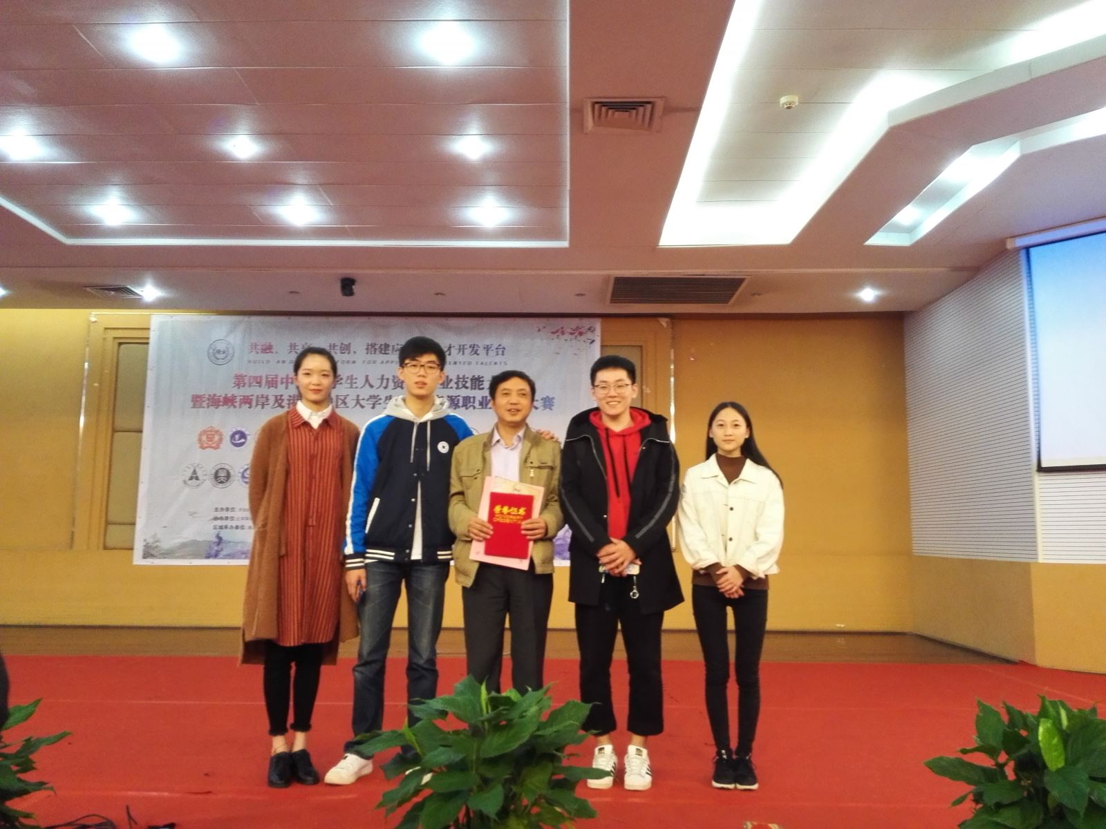 2018年10月19日-21日,由劳动经济学会和中国劳动关系公司联合主办的第四届中国老员工人力资源职业技能大赛(HRU)中东赛区分区赛于南昌市南昌大学如期举行。公司参赛代表队由管理公司人力资源专业15级员工张子鸣、文博涵、全湘君和向红四名同学组成,由管理公司曹哲文老师担任指导老师带队参赛。经过为期三天的激烈比拼,公司表现卓越,荣获中东赛区团队一等奖,并晋级于北京举行的第四届中国老员工人力资源职业技能大赛总决赛。其中张子鸣获个人单项特等奖,向红获单项二等奖,文博涵获单项二等奖,全湘君获单项三等奖。