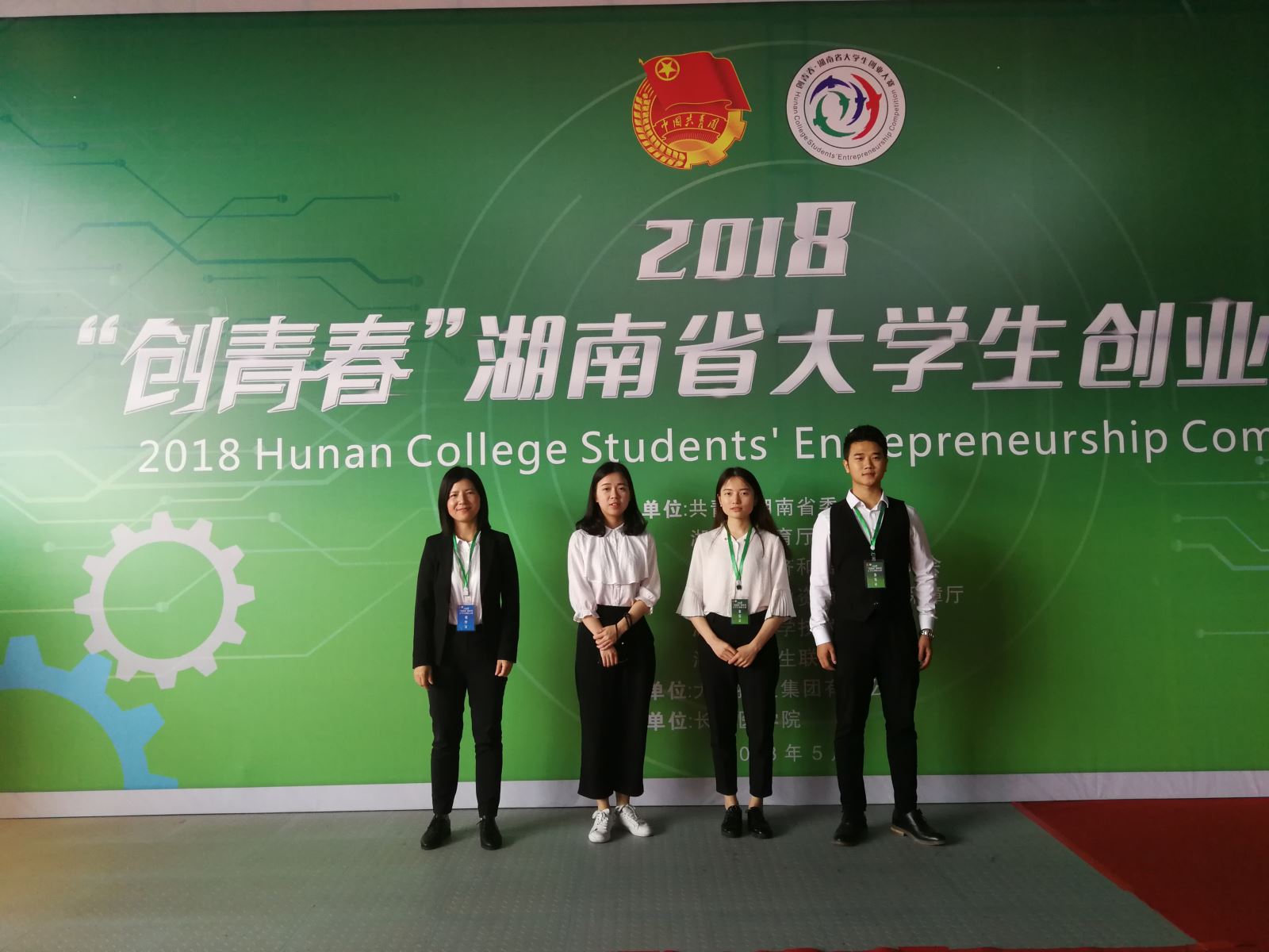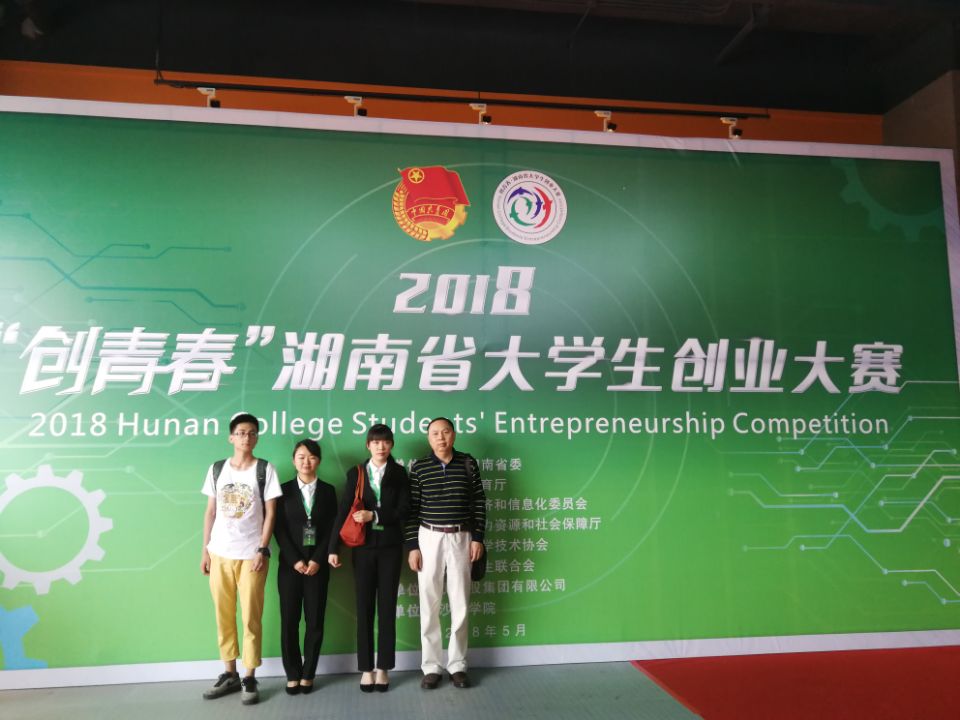 公司朱兰萍 李煌明 杨灿 董小锐的作品《“e粒粟”微农共享扶贫公益平台》(罗荃老师指导);辜佳豪 黄成 申家宁 严敏 沈静 《“源生”环保公益有限公司》(朱文明老师指导)经过公开展示、专家评审等比赛环节的激烈角逐,勇夺本次湖南省赛事的铜奖。