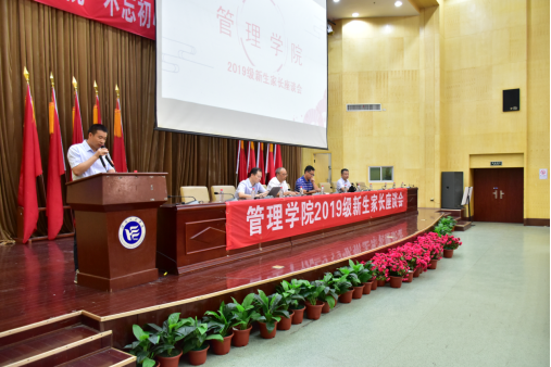 9月15日下午公司于新校区一报告厅召开2019级新生家长座谈会,与家长们共谈员工发展。管理公司院领导,新生班主任,员工辅导员以及2019级新生家长共同到场参会。