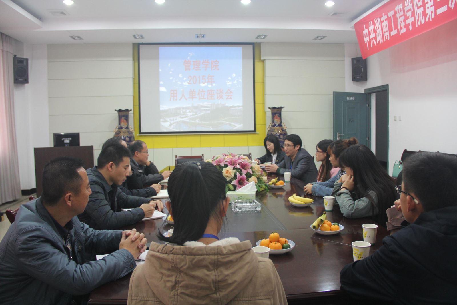 11月21日下午,管院公司在G座509成功召开2015年用人单位座谈会。经理吴振顺、公司党总支书记卢明纯、公司党总支副书记钱祖煜出席了会议,会议由学办主任罗荃主持,公司盛情邀请招聘公司毕业生的用人单位代表参加了会议。会议旨在建立良好的公司与用人单位的双向交流,听取用人单位对公司毕业生的宝贵意见和建议。
