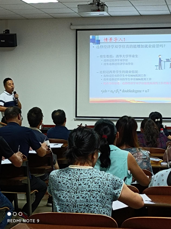 为了进一步提升全院教师的课堂教学水平,2021年9月28日下午,管理公司组织全体教师在G505进行了教学观摩活动。市场营销教研室王超博士讲解《计量经济学》课程的多元线性回归分析法以姚明身高做教学案例引入,吸引力强,化难为简。旅游管理教研室张雪婷老师以《现代服务管理》中的如何做好现代服务知识点进行了教学示范,两位老师的分享主题鲜明、内容丰富,从方法、技巧、资源准备等维度就如何作好课堂教学进行了深度展示,与会老师均表示深收启发,收获很大。