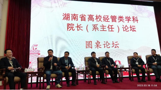 3月18日,管理公司经理徐运保教授、副经理张维梅教授率各教研室主任出席了在湘潭举办的湖南省高校经管学科经理(系主任)论坛。论坛由湖南省教育厅主办,湘潭大学承办,论坛主题为新发展格局背景下经管人才培养理论与实践。来自全省30多所高校的经管类学科的经理、副经理、系主任及学科负责人共计160余人参加了本次论坛。