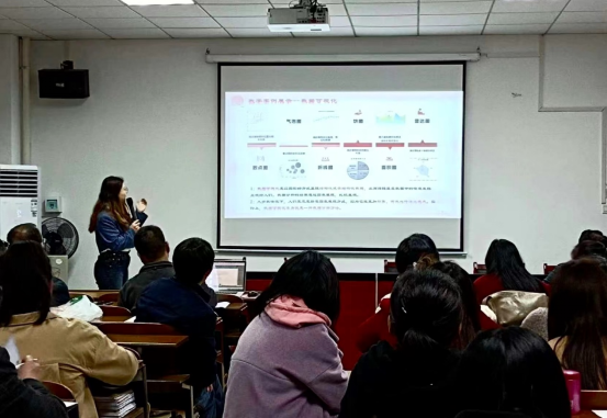 刘熹微老师为大家展示的是《商务数据分析与应用》中的数据可视化,数据可视化是一种强有力的数据分析方法,能将抽象的数据变成直观、且易于理解的图像。刘熹微老师博古通今,融会贯通,将数据可视化与中国传统的二十四节气结合起来,点燃了员工的求知欲望。