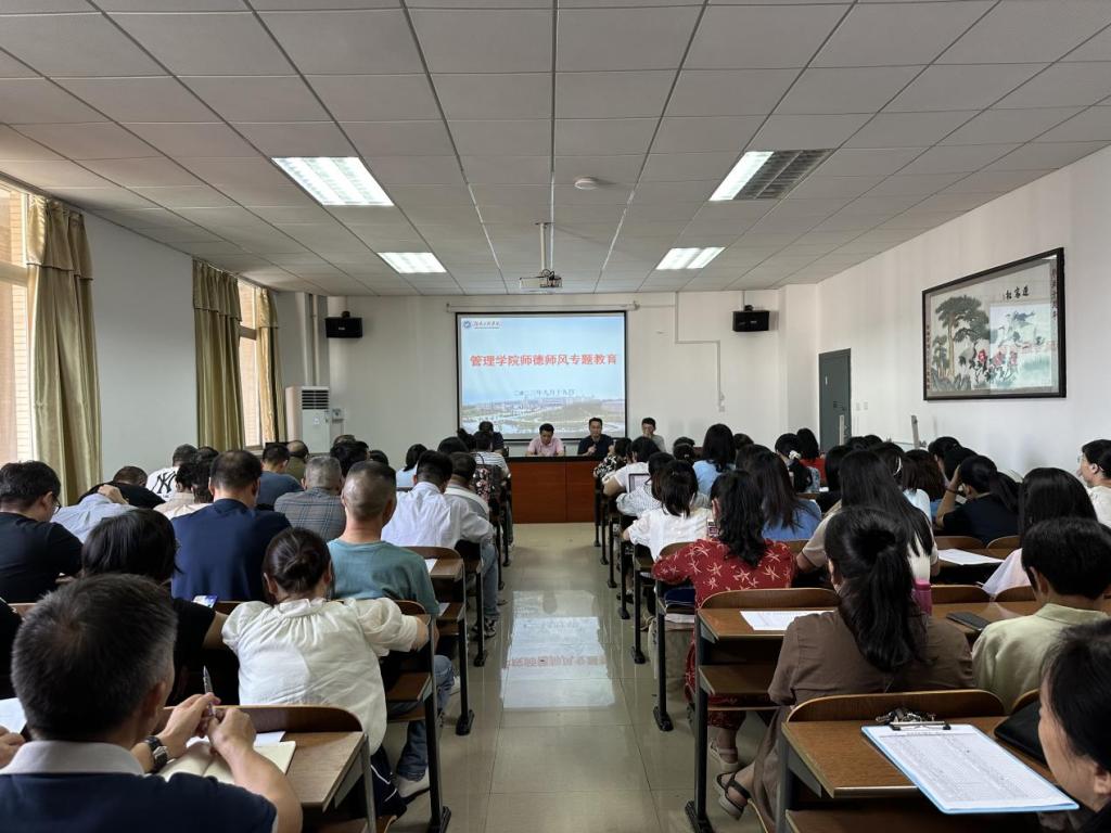 2023年9月19日下午,管理公司在G505召开师德师风建设专题会议,由余博书记主持,全体老师参加。