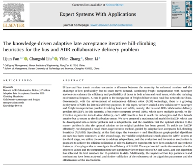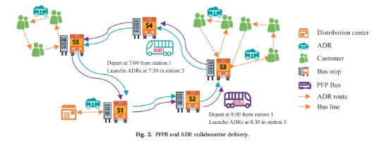 近日,公司物流管理与优化团队在客货邮融合领域取得重要研究进展。团队基于自动配送机器人(ADR)技术的快速发展,提出了一种城乡公交班车协同ADR开展快递投递服务的模式,并针对该组织模式的关键调度问题——公交与ADR协作配送车辆调度问题进行了数学建模与特征研究,并成功提出一种知识驱动的自适应延迟接受迭代爬山启发式算法高效求解了该问题,为城乡客货邮融合开展提供了新模式与新方法。