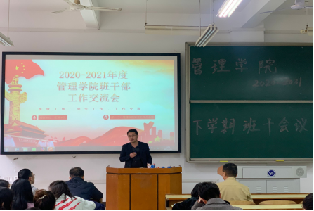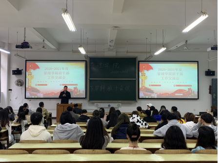 为逐步提升管理公司班级整体建设,增进师生交流。2021316-17日,管理公司在新、南校区组织召开班委工作交流大会。会议由党委副书记张宏主持,党委书记余博、副经理潘立军、学办主任谭超、全体学办辅导员及2018-2020级各专业班级班长、团支书、学委参加会议。