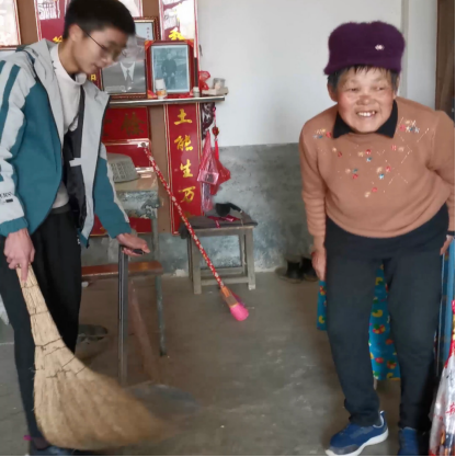 图为志愿者刘瑾帮忙给老人们打扫卫生 刘瑾供图
