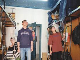 包海燕和周艺两位老师对明德一二栋女寝进行了视察,强调女生宿舍的安全问题,提醒女同学们要注意安全,同时也对宿舍卫生和大功率电器进行了检查。