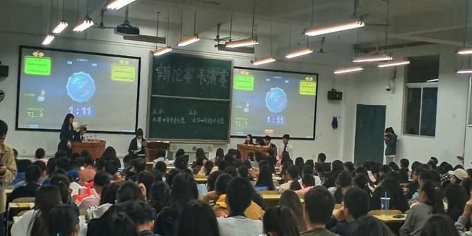 为培养公司员工的思辩能力和语言表达能力,鼓励员工积极参加课余实践活动,XC体育管理公司于11月3日晚7点在D座101教室举办了面向19级新生的辩论表演赛,双方辩手就“大学四年单身到底可不可悲”这一辩题进行激烈辩论,管理公司19级新生到场观看。