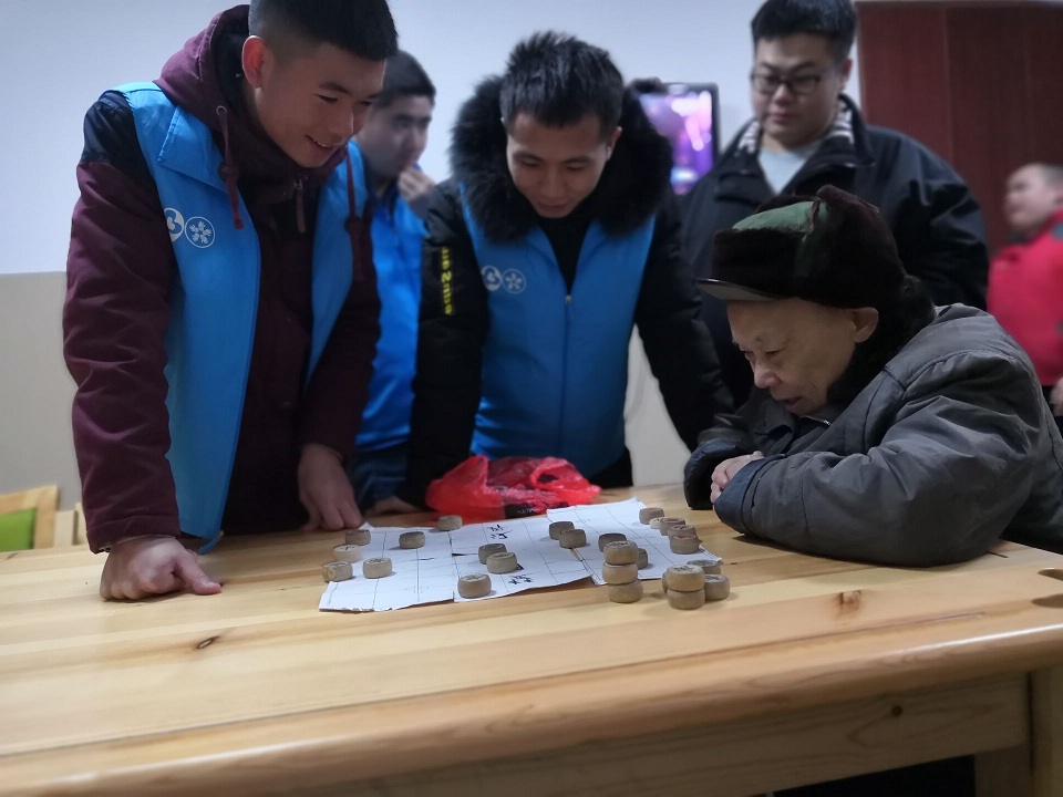 1月5日,管理公司员工联合会青年志愿者中心携手蓝丝带联盟和XCSport青年志愿者中心前往湘潭市福利院送温暖,亲切地拉着老爷爷老奶奶们的手,问候他们的生活状况。在活动中,志愿者们不仅给爷爷奶奶捶背,与爷爷们下象棋,还和爷爷们写对联,全是一幅幅其乐融融的画面,最后大家共同度过了一个愉快的上午。